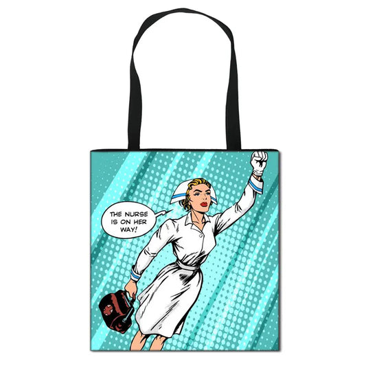 Unique Pattern Shoulder Bag Bolso Mujer Nurse Image Painting Eco Linen Practical Handbag for Daily Use Work Travel Ladies Girls
